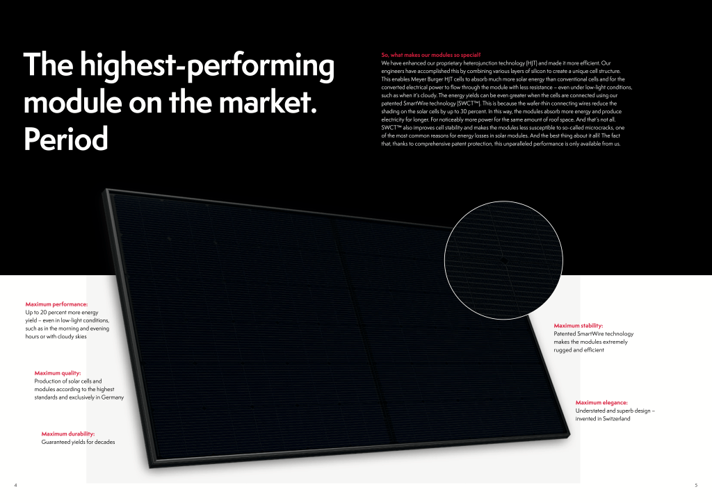 Meyer Burger setzt sich mit Nachdruck für die Förderung von nachhaltiger Energie und den Schutz der Umwelt ein. Jedes Projekt wird unter Berücksichtigung ökologischer Verantwortung und mit dem Ziel der Nachhaltigkeit realisiert.